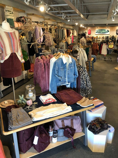 Inbetween standard wall panels we have these "floating" curved frames that house shelves and mirrors. These are used to create product vignettes, giving the merchandising team an opportunity to tell a story. This is a necessary part of designing for small boutiques like Wanderlust.